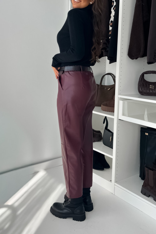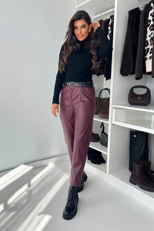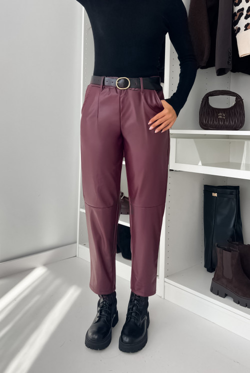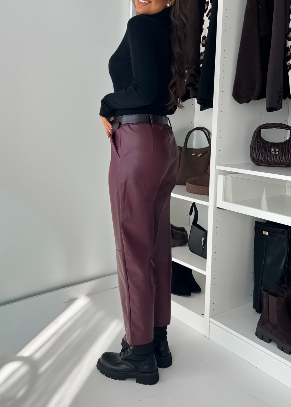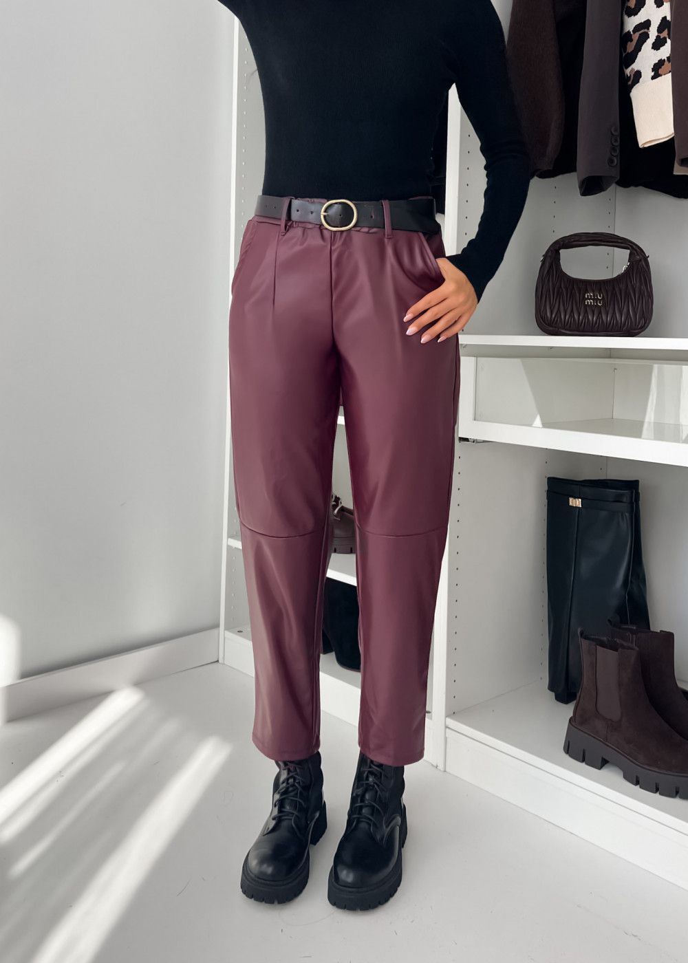 SPODNIE REVERS LEATHER BORDO - Z PASKIEM