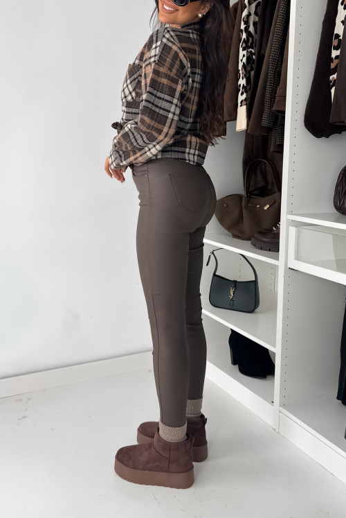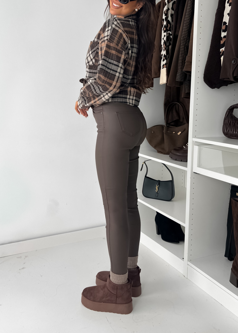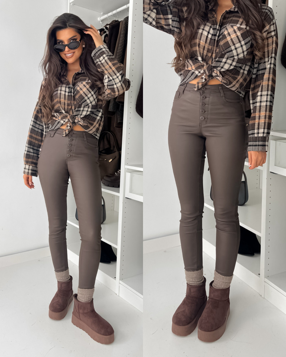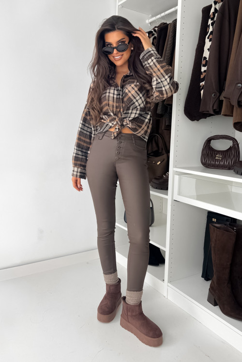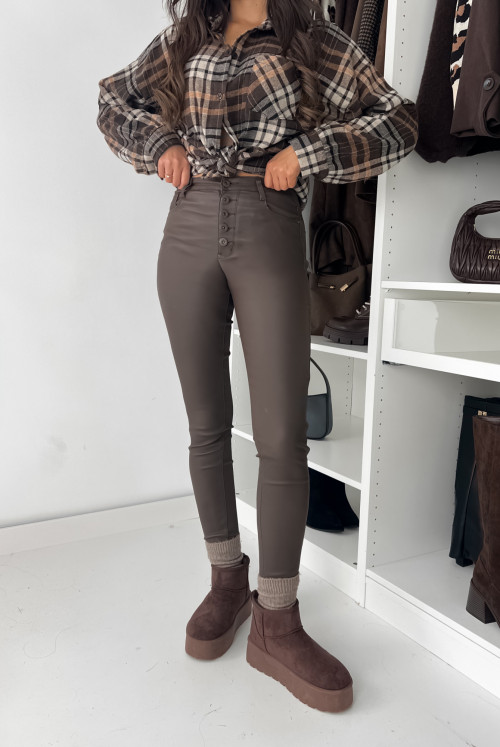SPODNIE WOSKOWANE HIGHT WAIST - CHOCO