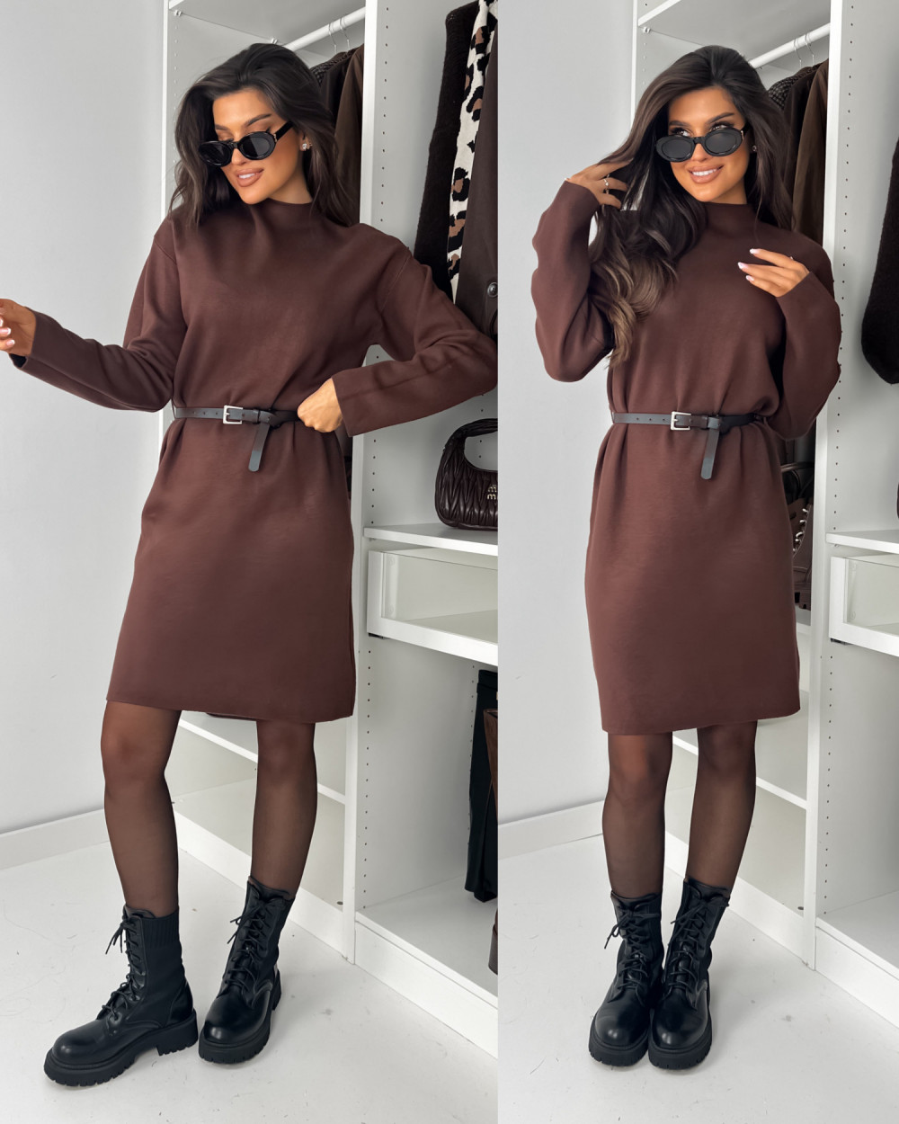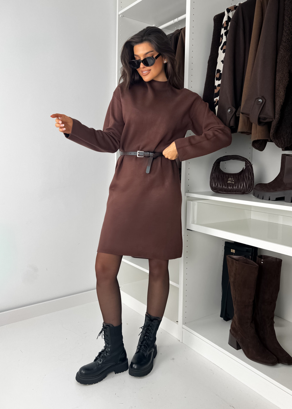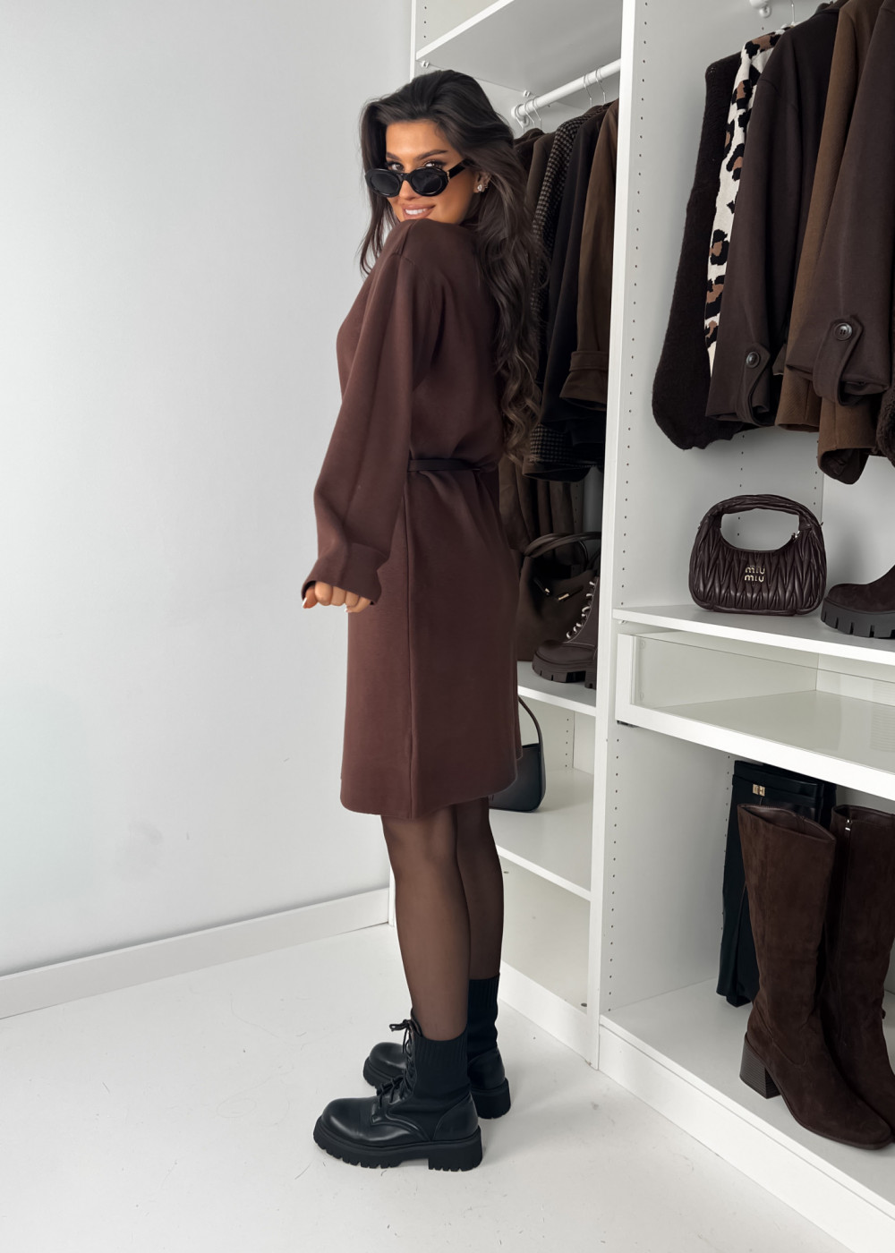 SUKIENKA DZIANINOWA MIKKA Z PASKIEM - CHOCO