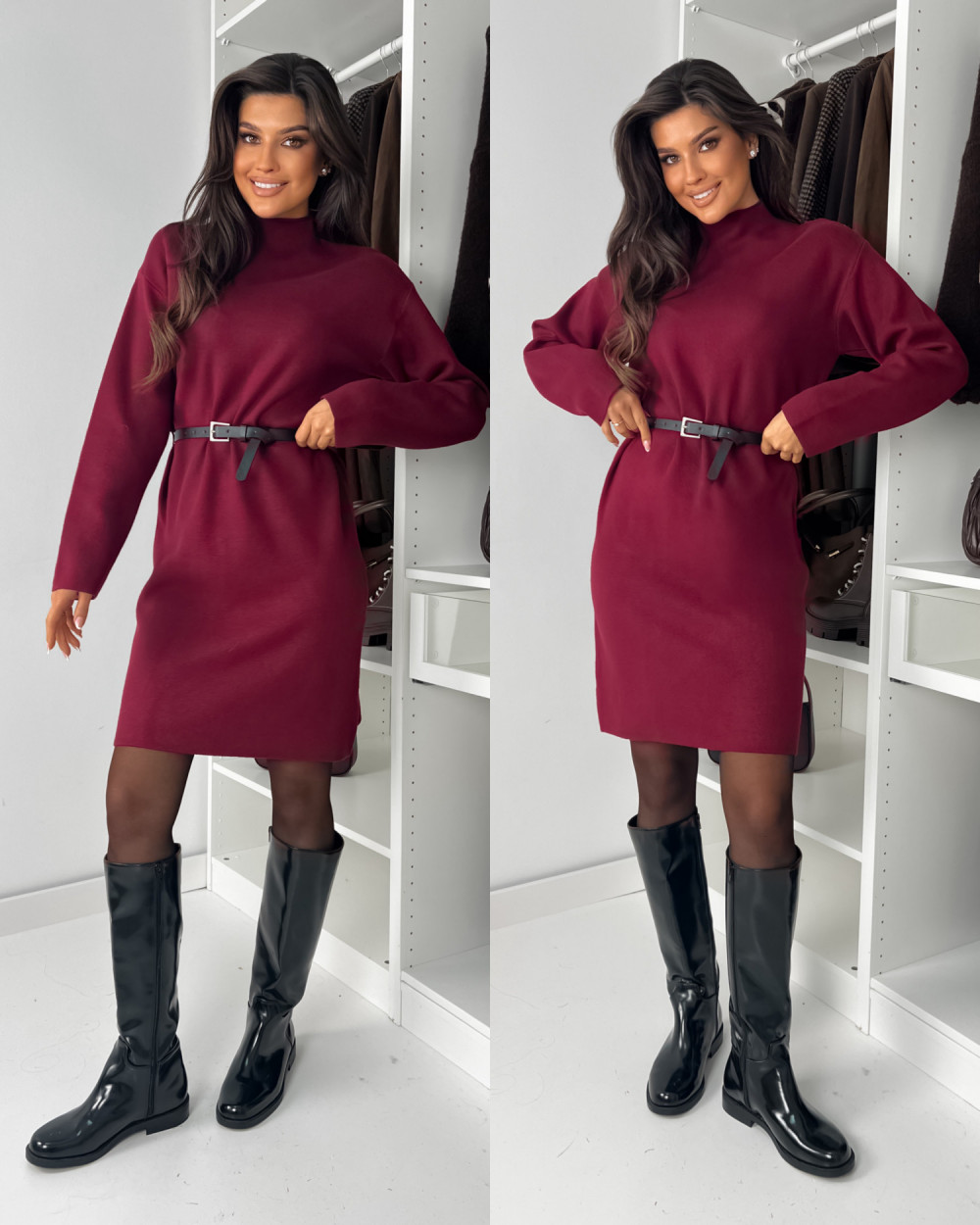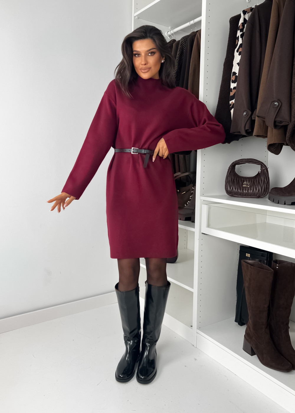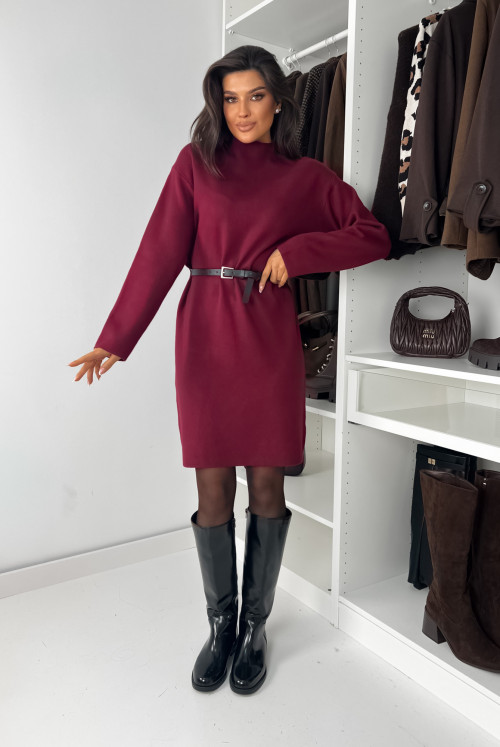 SUKIENKA DZIANINOWA MIKKA Z PASKIEM - BORDO