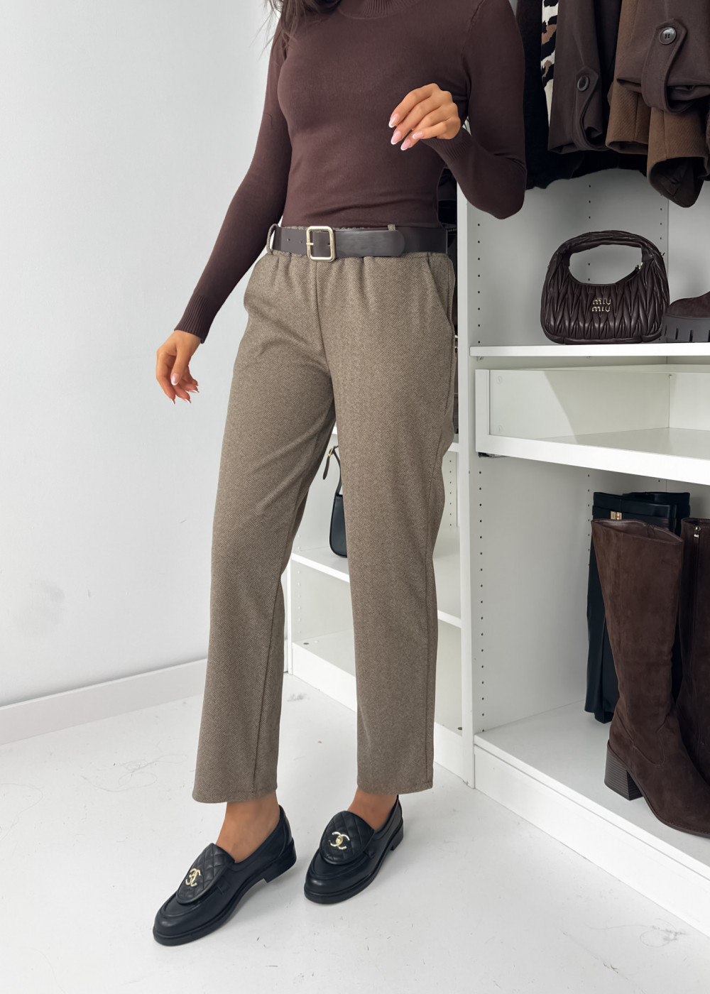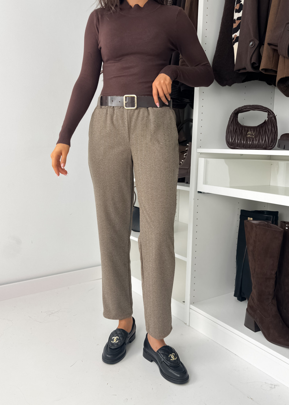 SPODNIE EVIS CHOCO Z PASKIEM