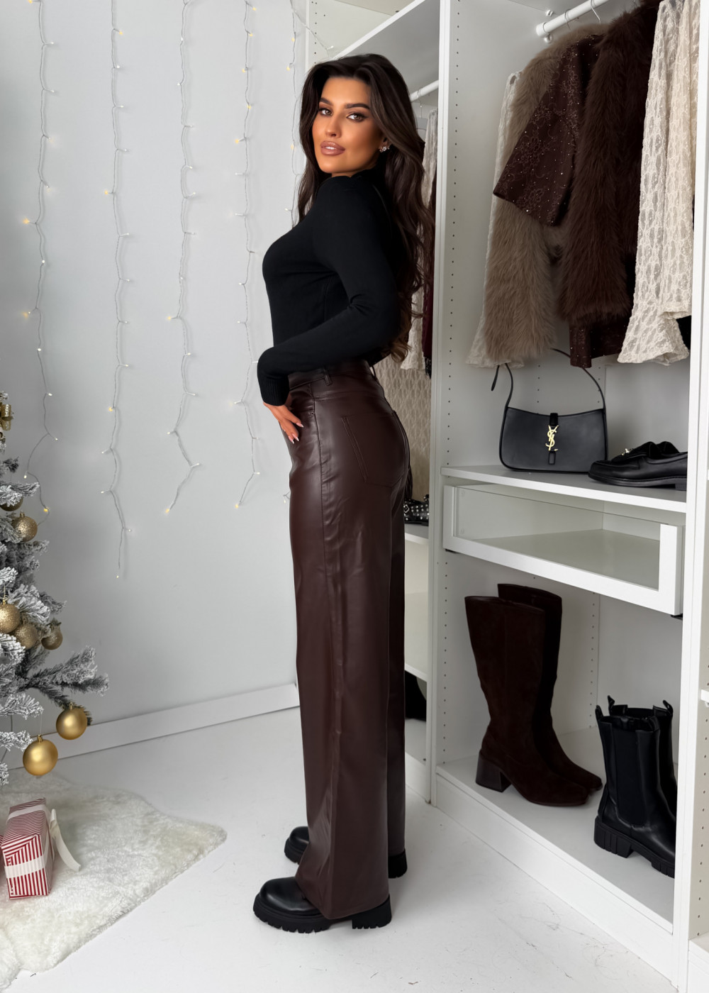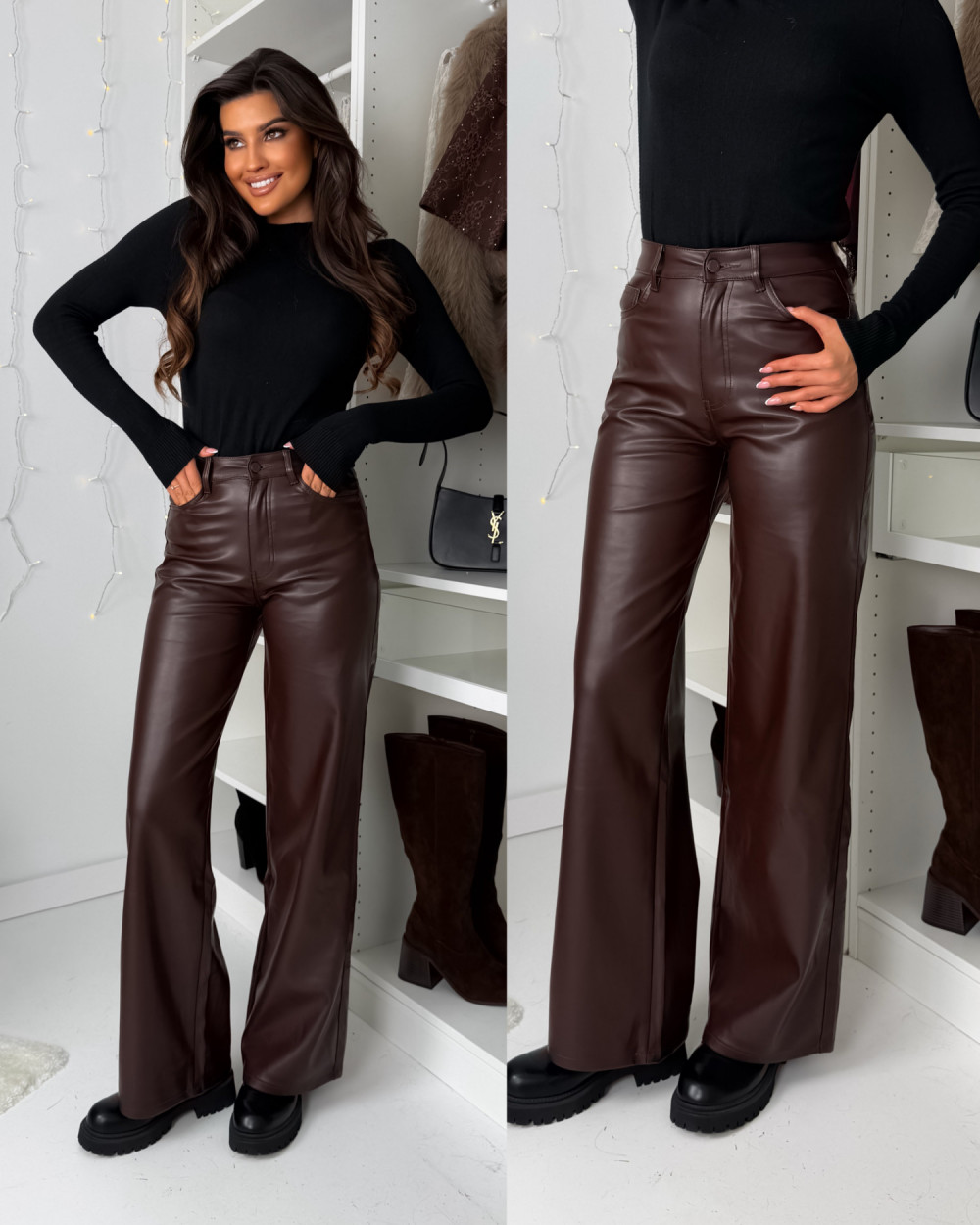 SPODNIE WIDE LEG LEATHER CHOCOLATE