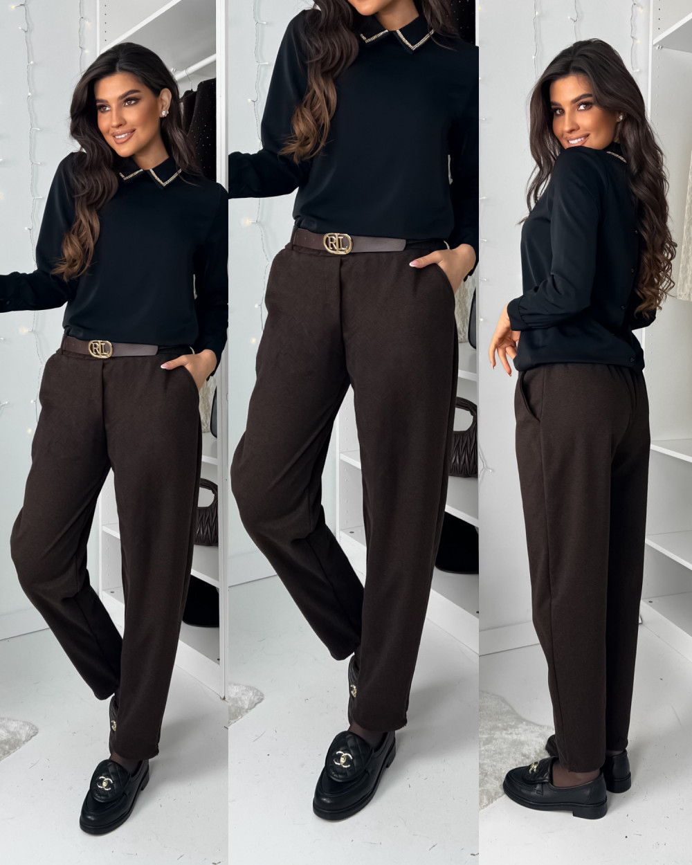 SPODNIE TYPU MOMFIT Z PASKIEM - CHOCO