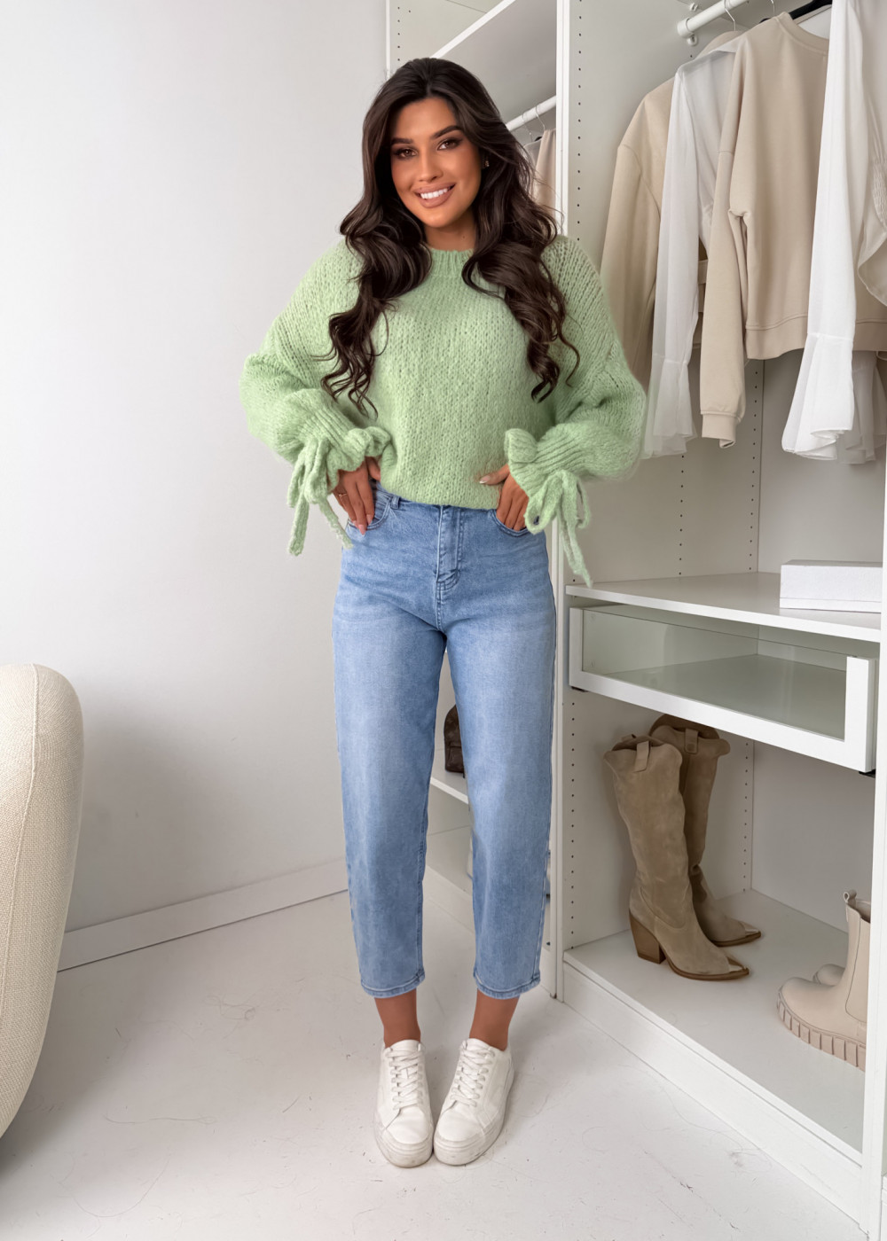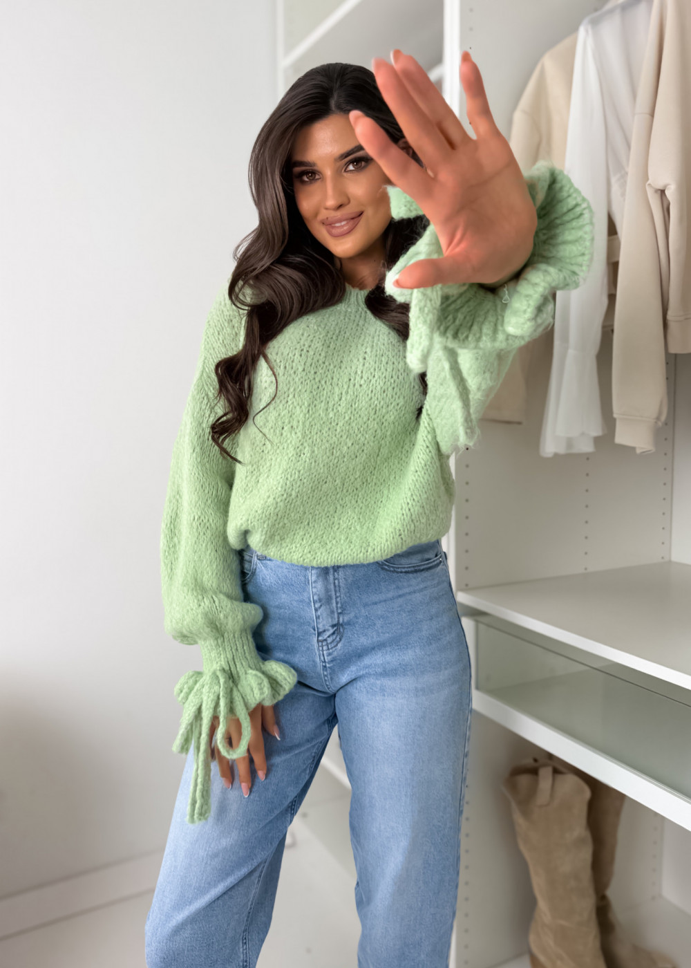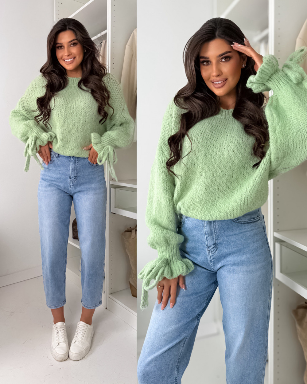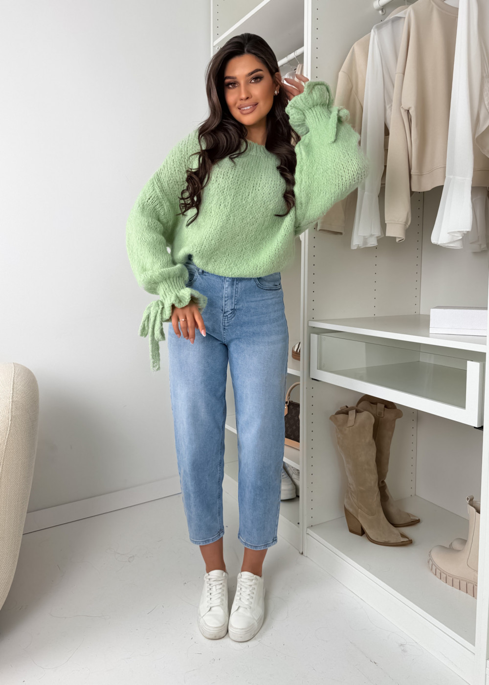 SWETEREK BOW Z LAMĄ MATCHA