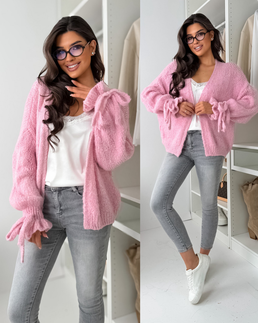 SWETEREK FALL Z LAMĄ - PASTELS ROSE
