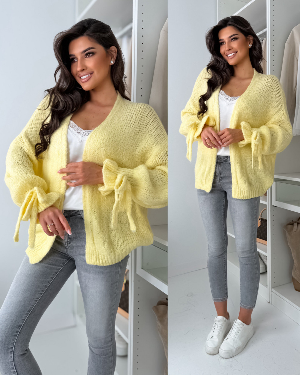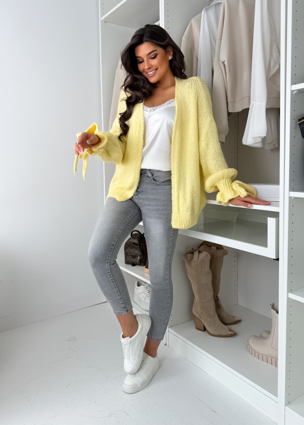 SWETEREK FALL Z LAMĄ - PASTELS YELLOW