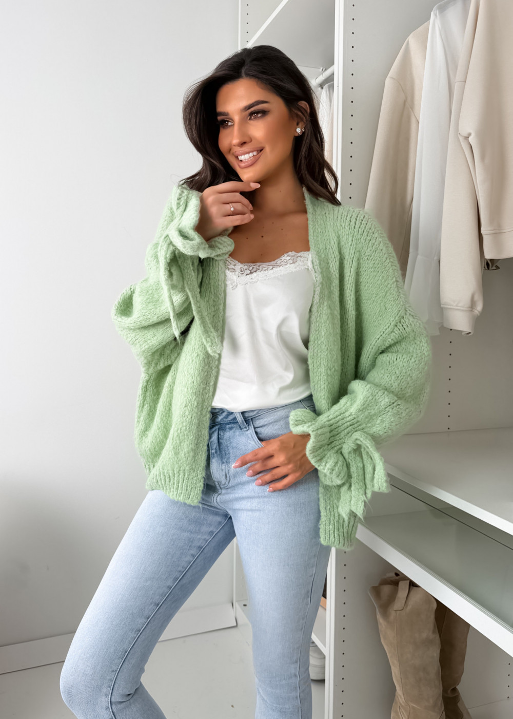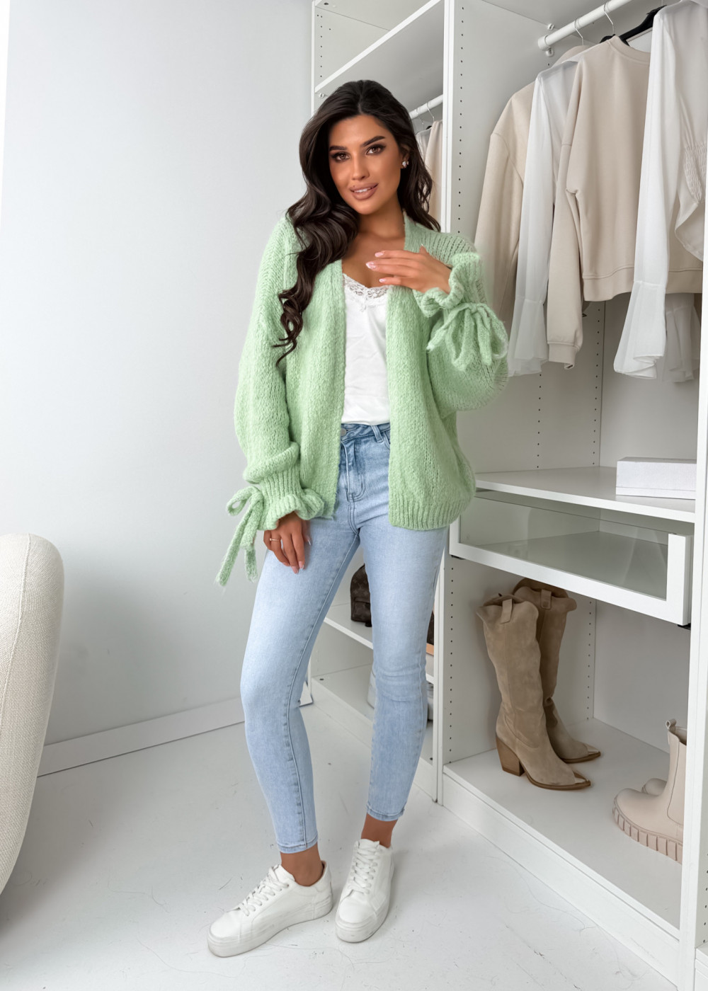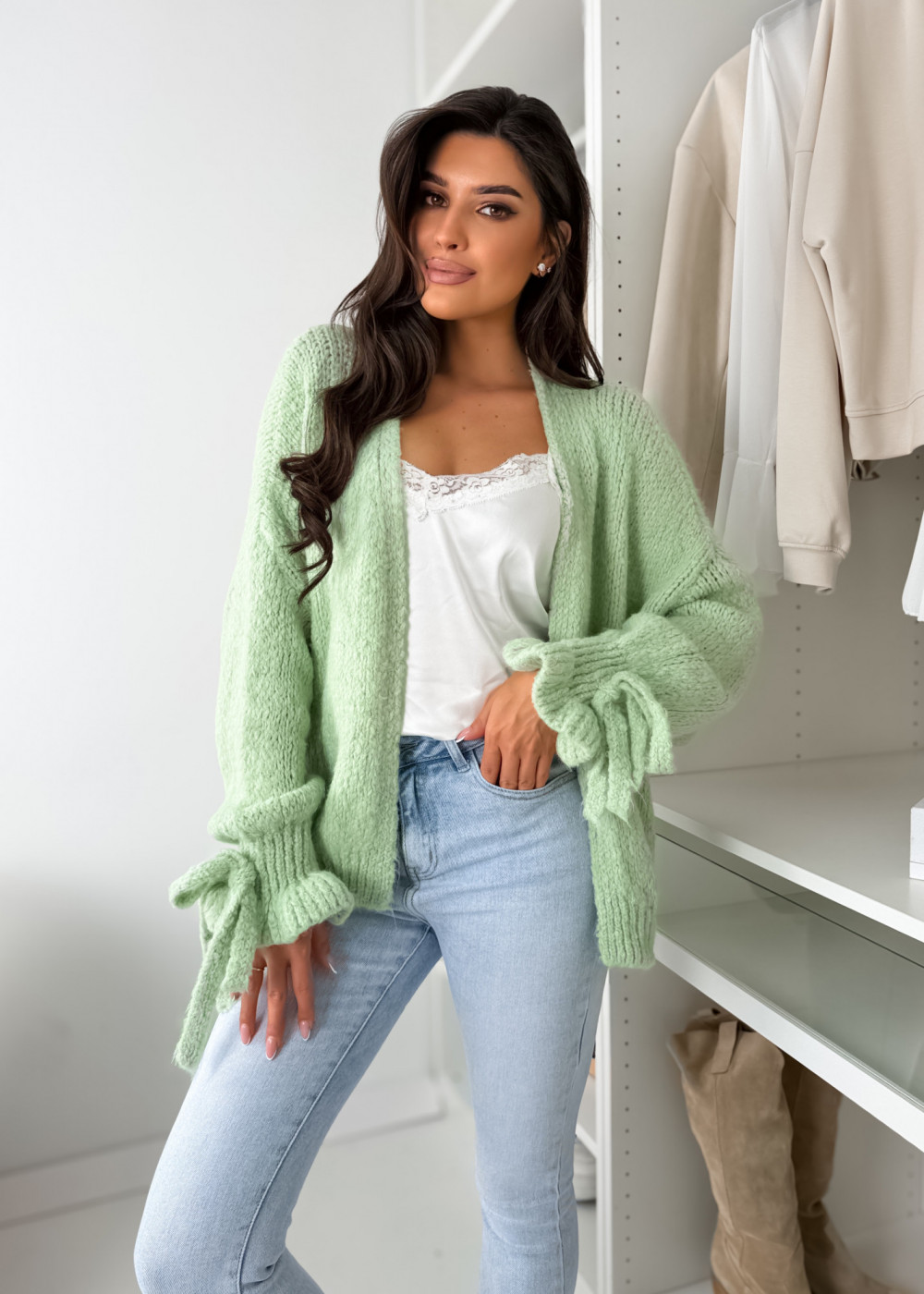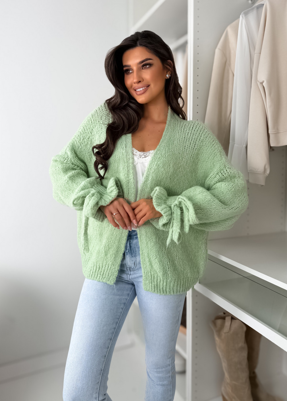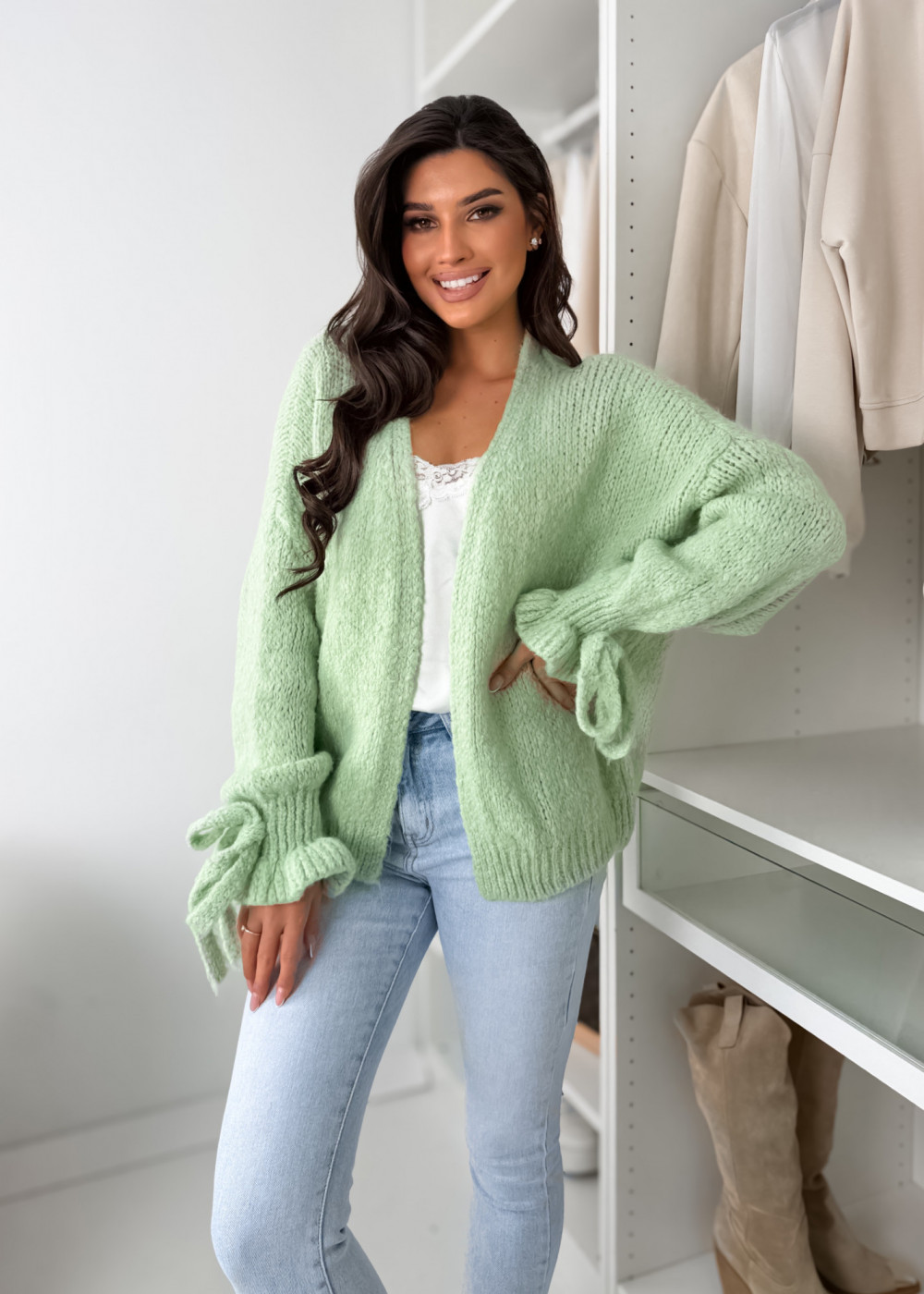 SWETEREK FALL Z LAMĄ - MATCHA