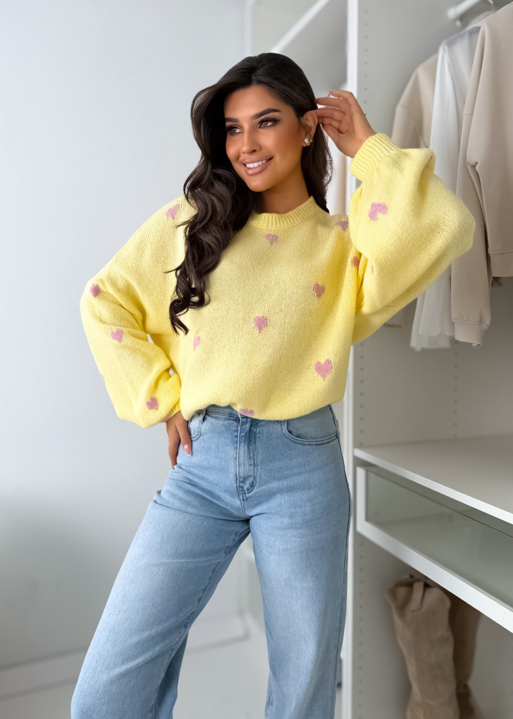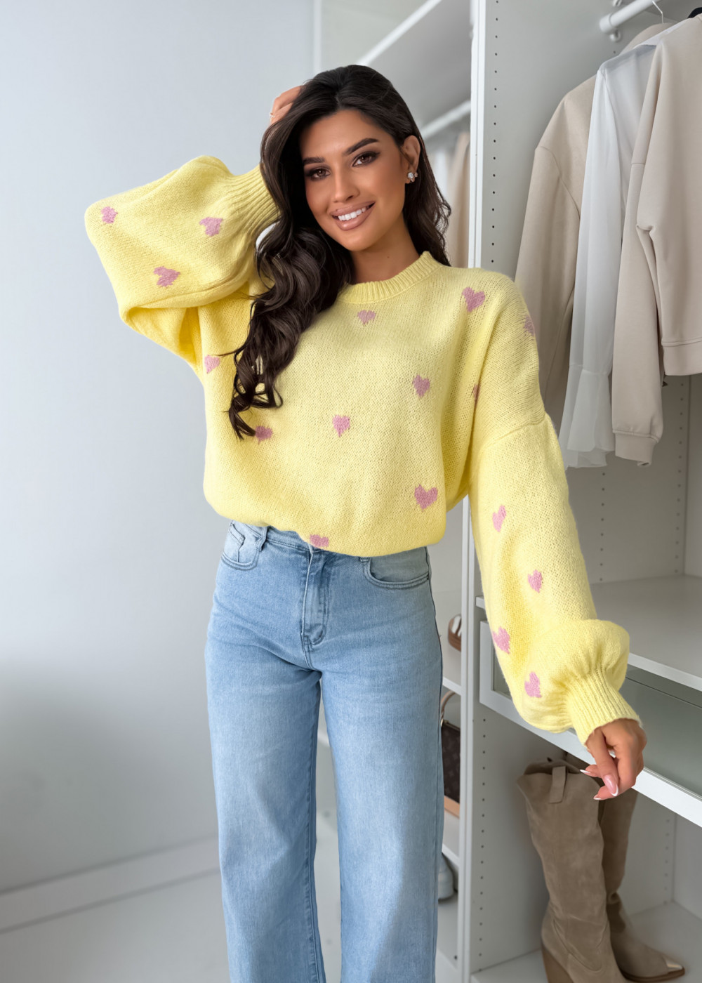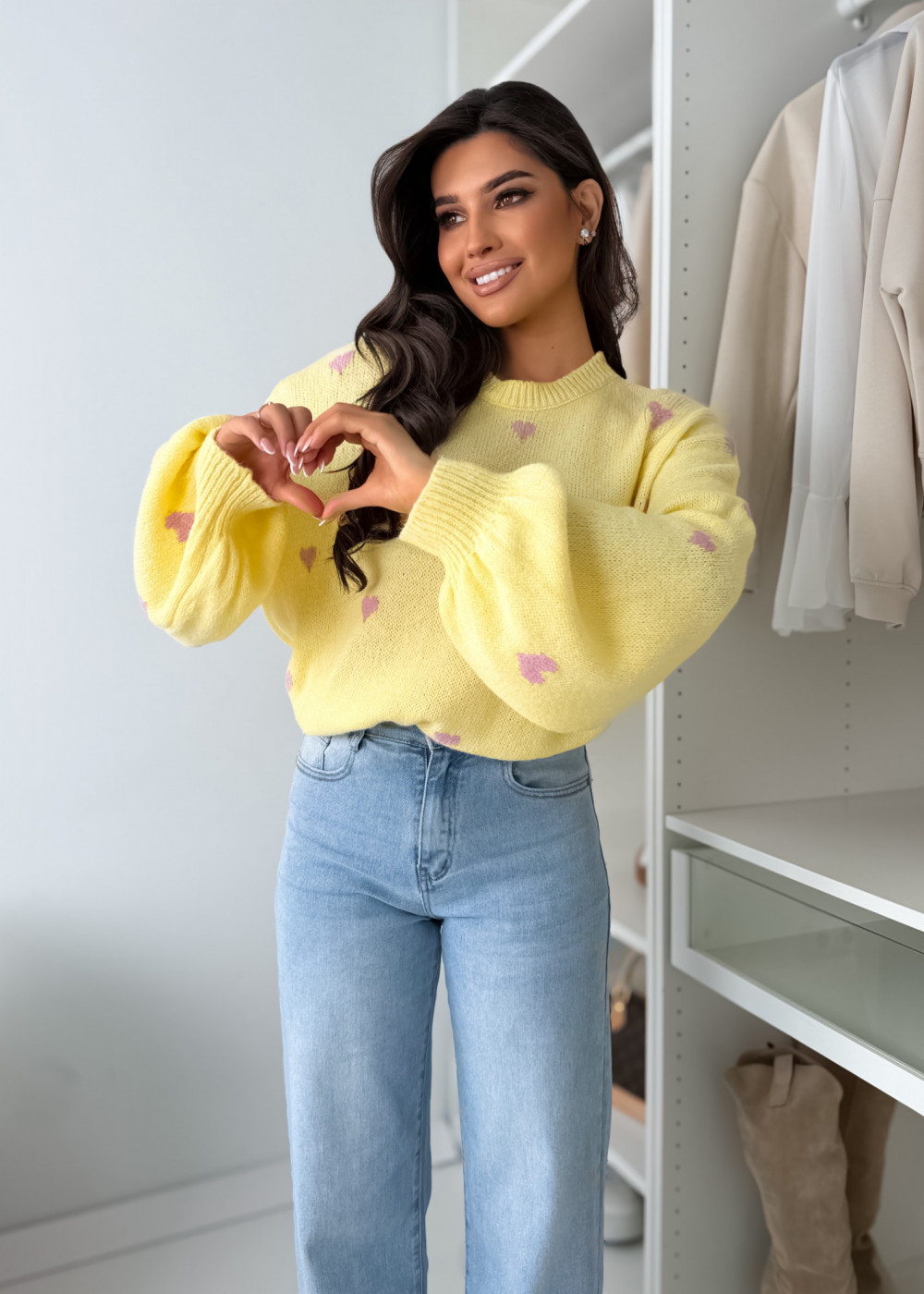 SWETEREK VOUS HEART Z LAMĄ PASTELS YELLOW