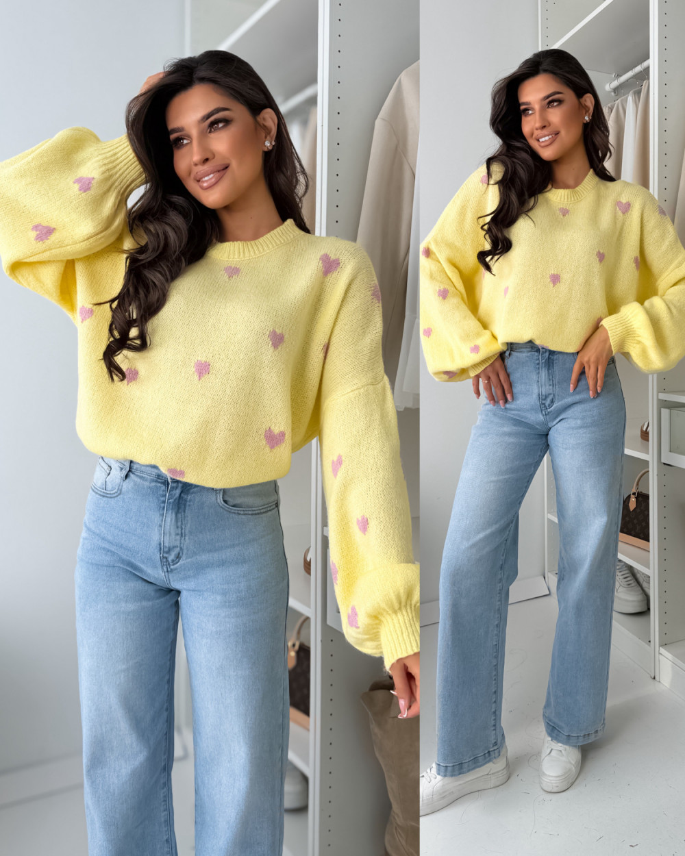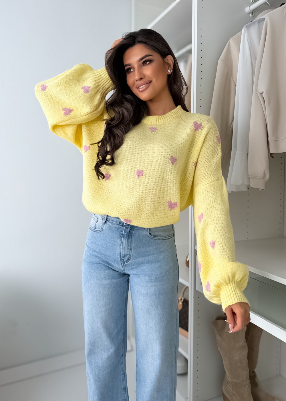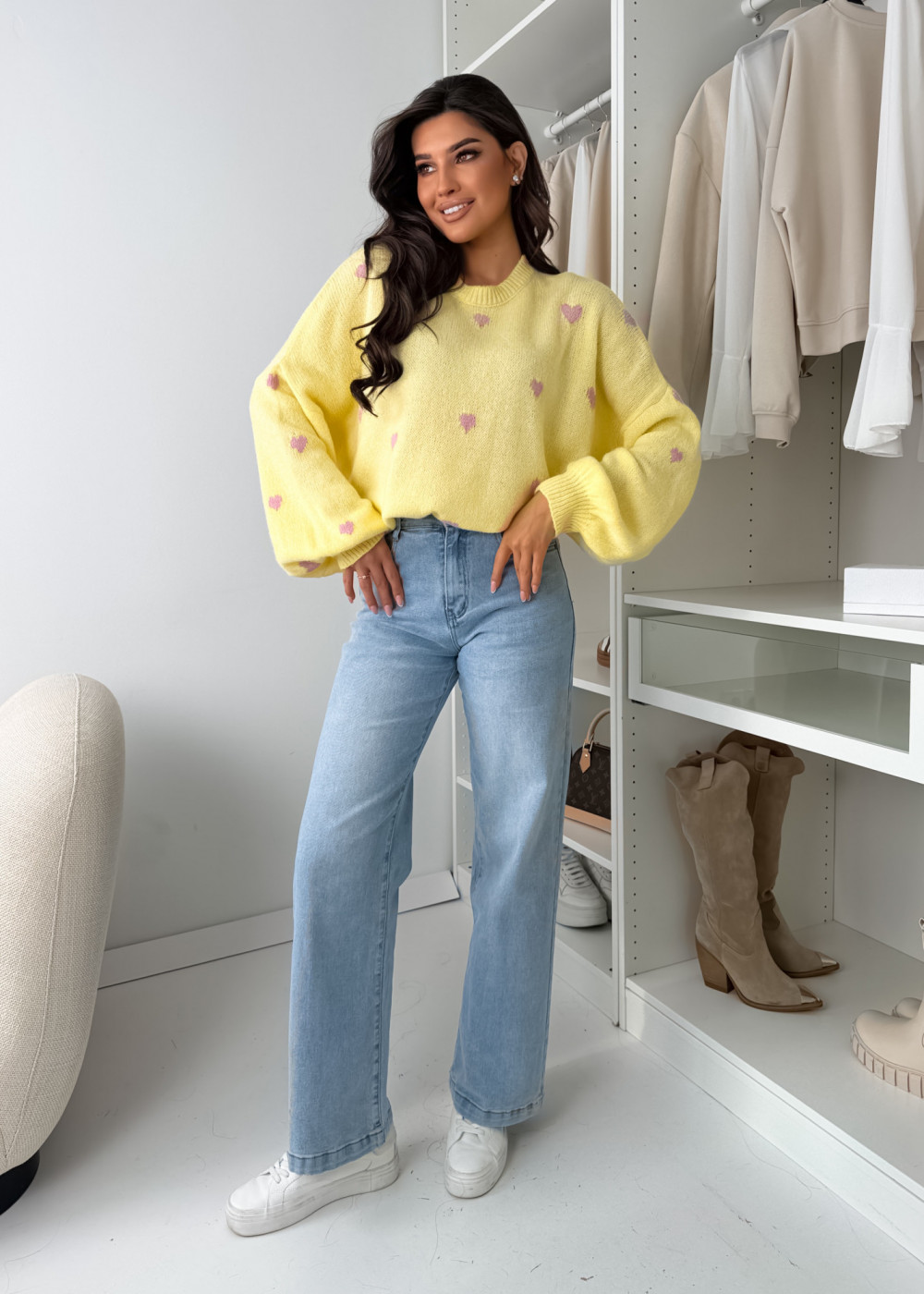 SWETEREK VOUS HEART Z LAMĄ PASTELS YELLOW