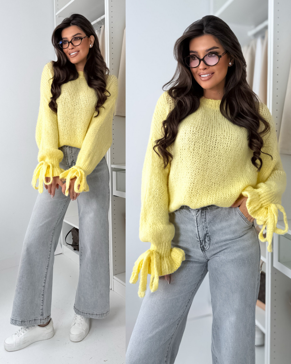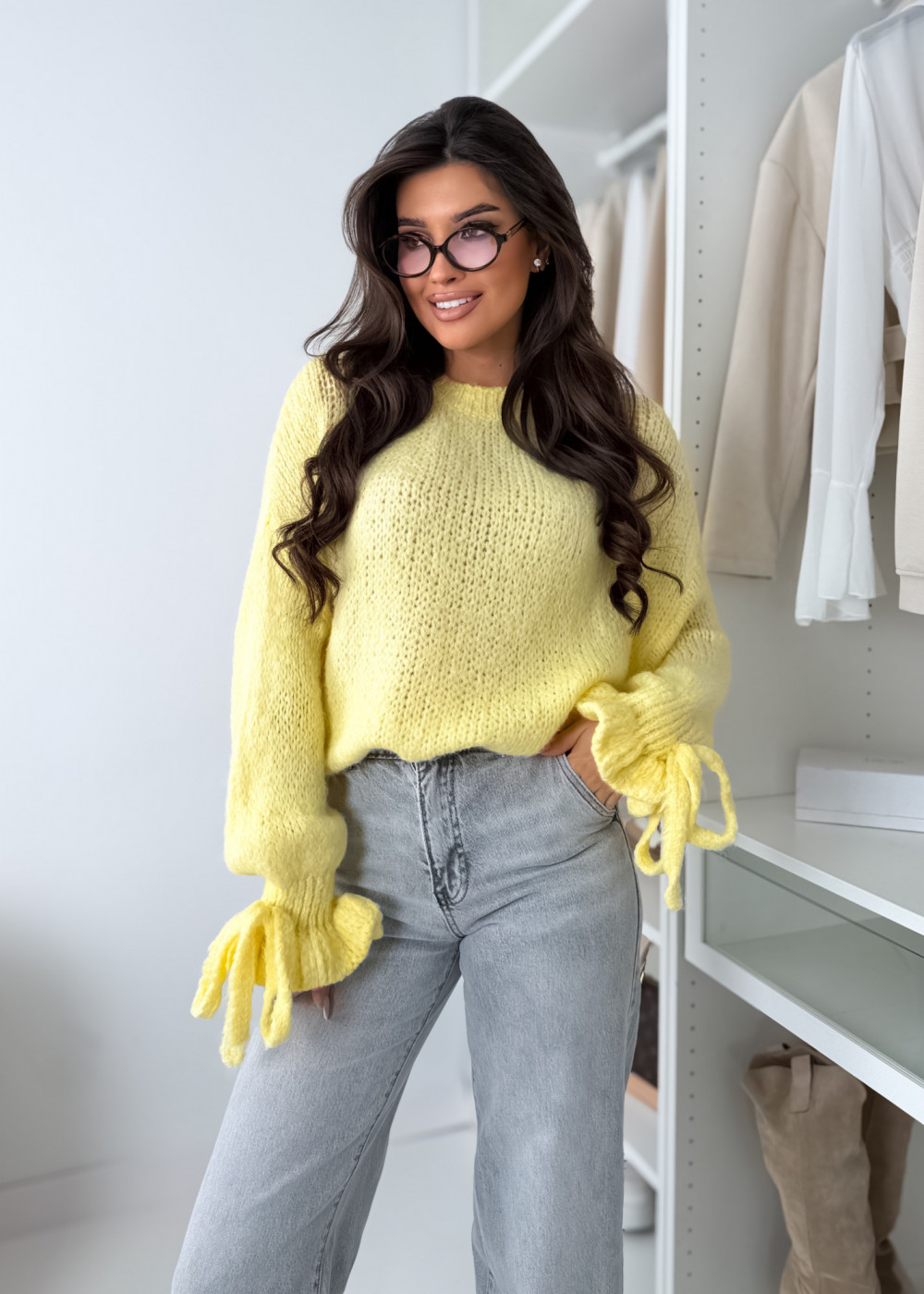 SWETEREK BOW Z LAMĄ YELLOW