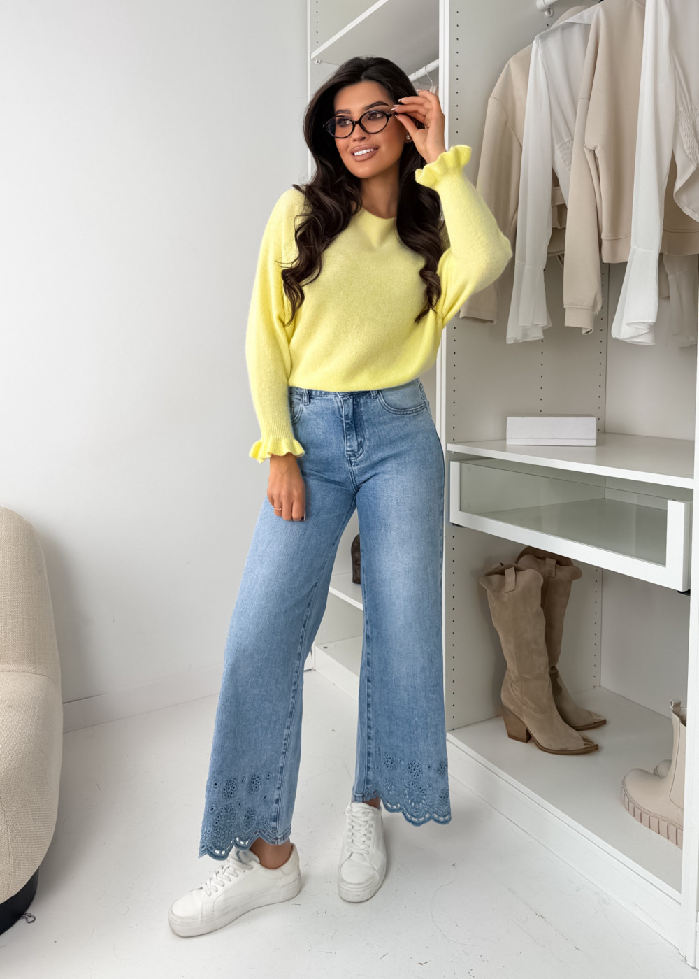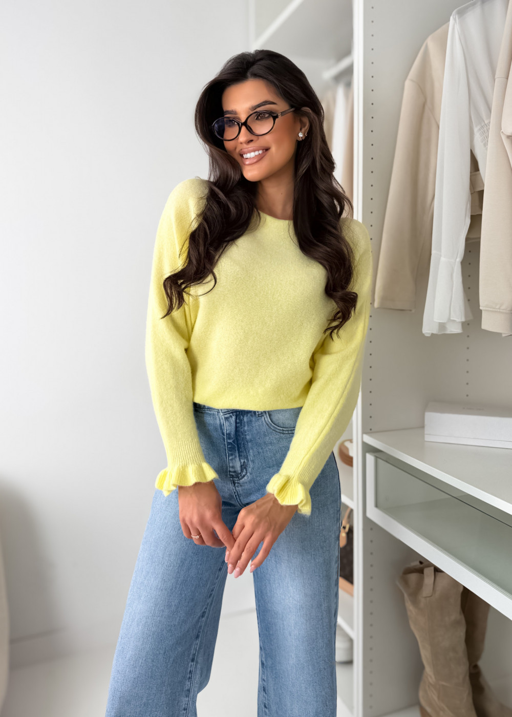 SWETEREK PATTY Z LAMĄ - PASTEL YELLOW