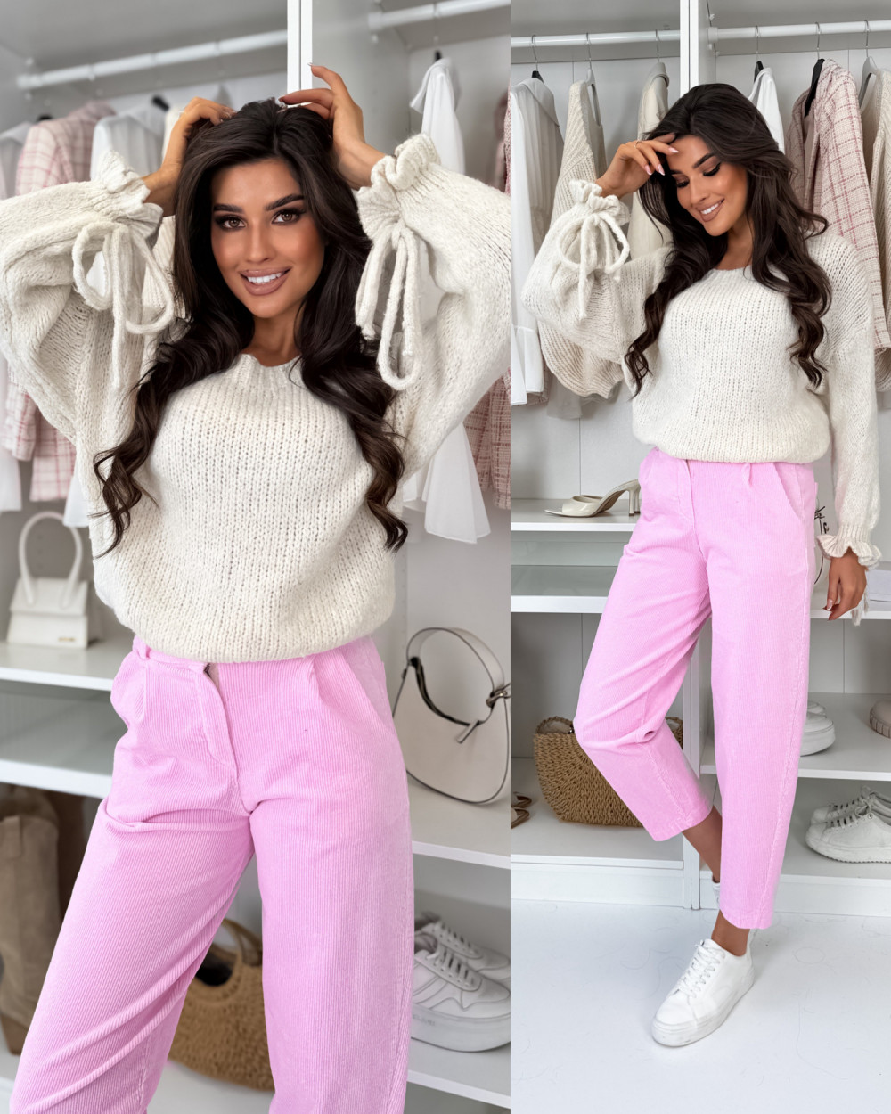 SWETEREK BOW Z LAMĄ BEIGE