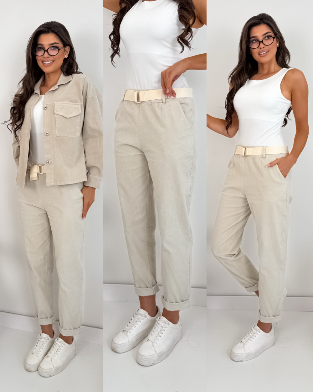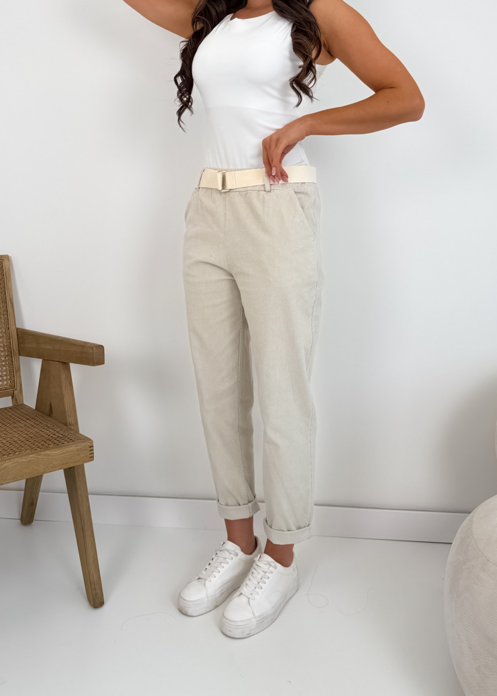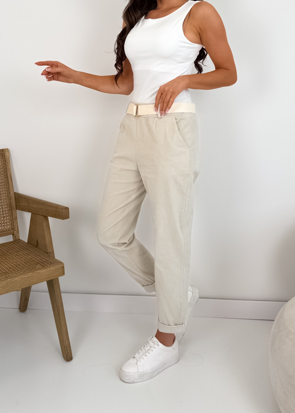 SPODNIE ROLLS Z PASKIEM BEIGE