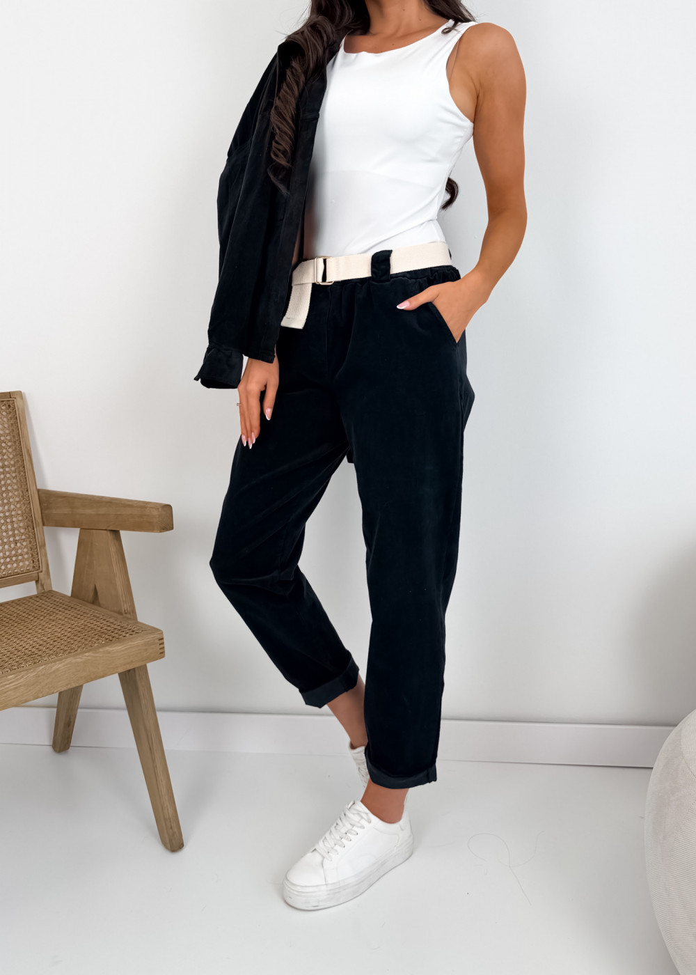 SPODNIE ROLLS Z PASKIEM BLACK
