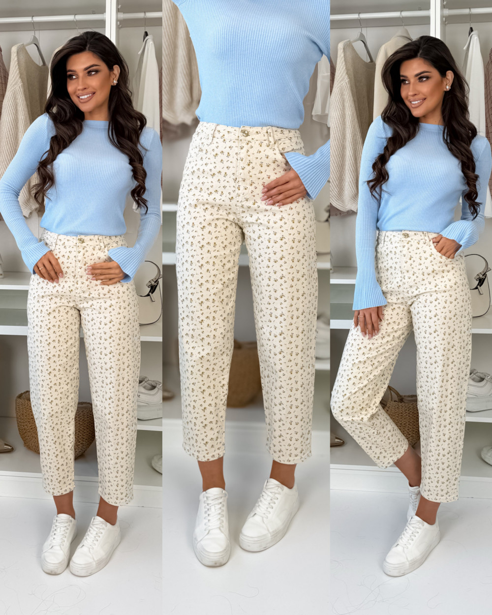 JEANSY MOMFIT BEIGE MINI FLOWER